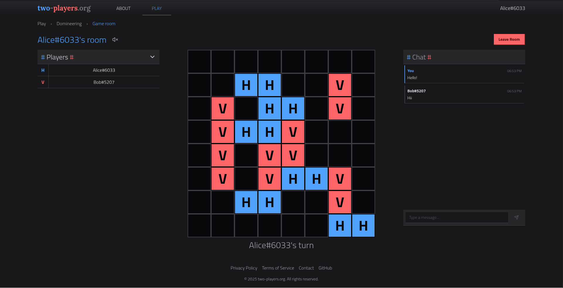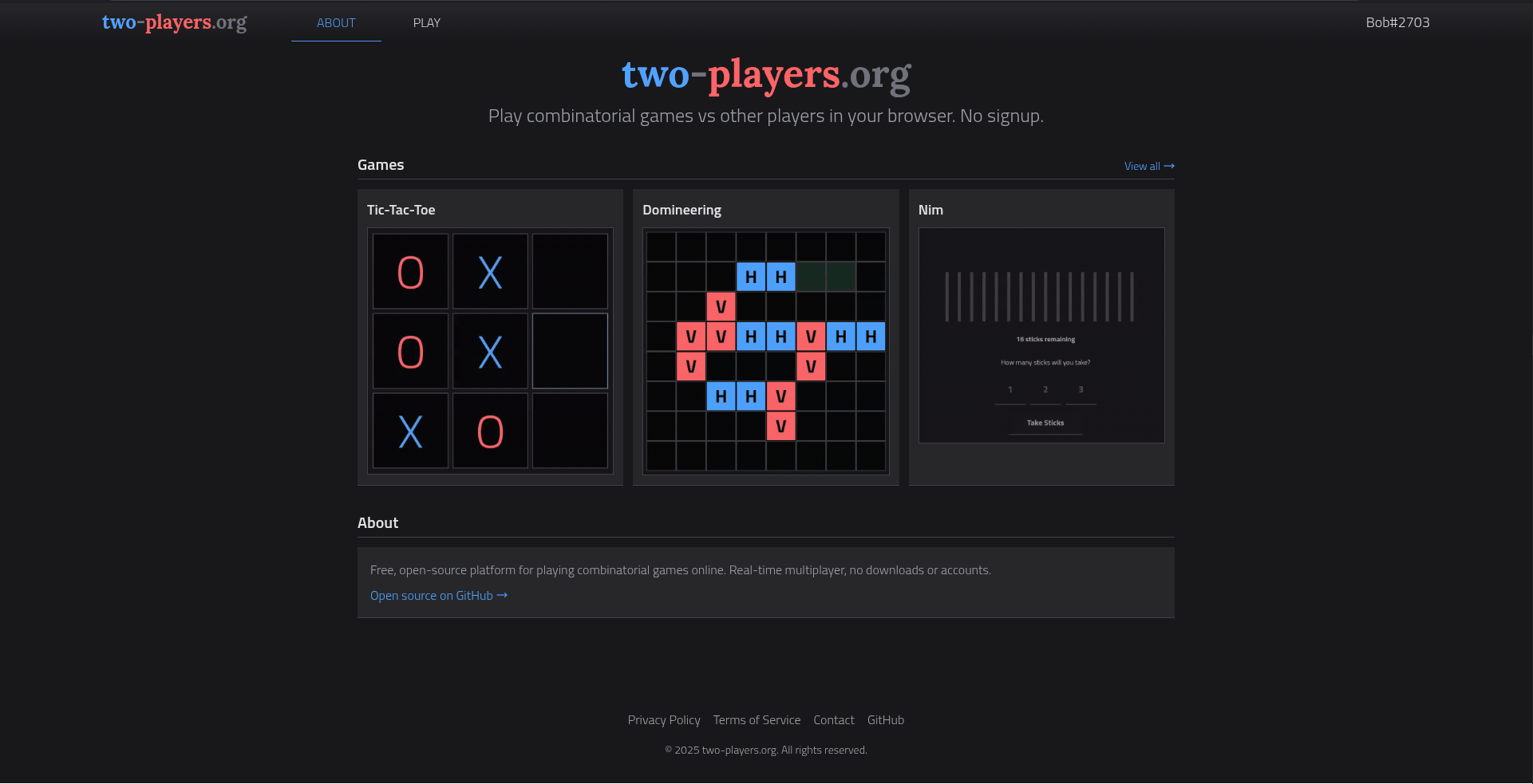While exploring Wikipedia I randomly came across the combinatorial game theory page and found it really interesting. I picked up Lessons in Play based on the recommendations, and on the first chapter it told me to go play some games of Domineering with a friend first. However, I didn’t have dominoes nor a board to play on, looking online I didn’t see any place these classic combinatorial games… So I built one. This project became my way to explore both game theory and full-stack development, and now there is a platform where anyone can play these games with friends online ^^